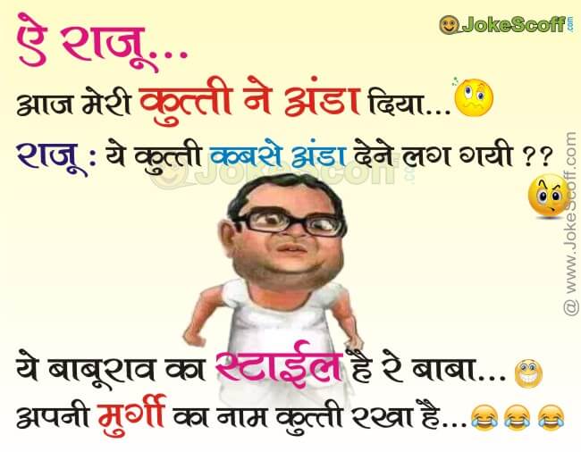 बाबूराव : ऐ राजू… आज मेरी कुत्ती ने अंड़ा दिया…